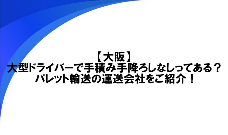 【大阪】大型ドライバーで手積み手降ろしなしってある?パレット輸送の運送会社をご紹介!